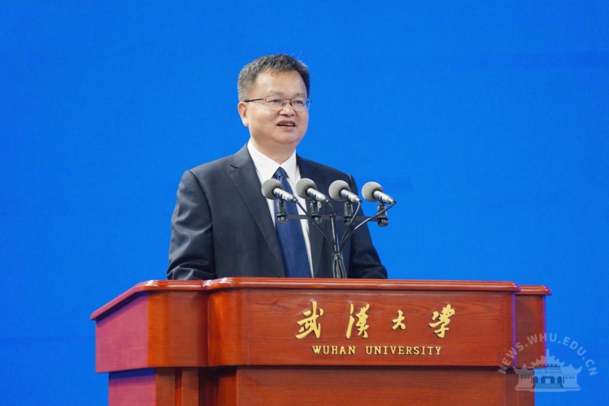 面向本科生新生,张平文发表了题为“心怀热爱 点亮未来”的讲话,代表全校师生员工向新生表示欢迎。他指出,2025年是中国人民抗日战争暨世界反法西斯战争胜利80周年,武汉大学也经受过抗战烽火的洗礼,一大批进步师生以不同形式投身于抗日救亡活动之中,铸就了令世人惊叹的“乐山辉煌”。这份深刻而坚定的热爱,不仅在抗战时期的武大人身上充分彰显,更在后续的传承中不断拓展深化,融汇于“自强、弘毅、求是、拓新”的校训精神,积淀成谋求人类福祉、推动社会进步、实现国家富强的价值追求。他寄语同学们:心怀对祖国的热爱,在强国征程中践行青春使命、彰显青年担当;心怀对时代的热爱,在数智浪潮中找准自我定位、锚定前进方向;心怀对学校的热爱,在珞珈沃土中汲取精神养分、夯实发展根基。