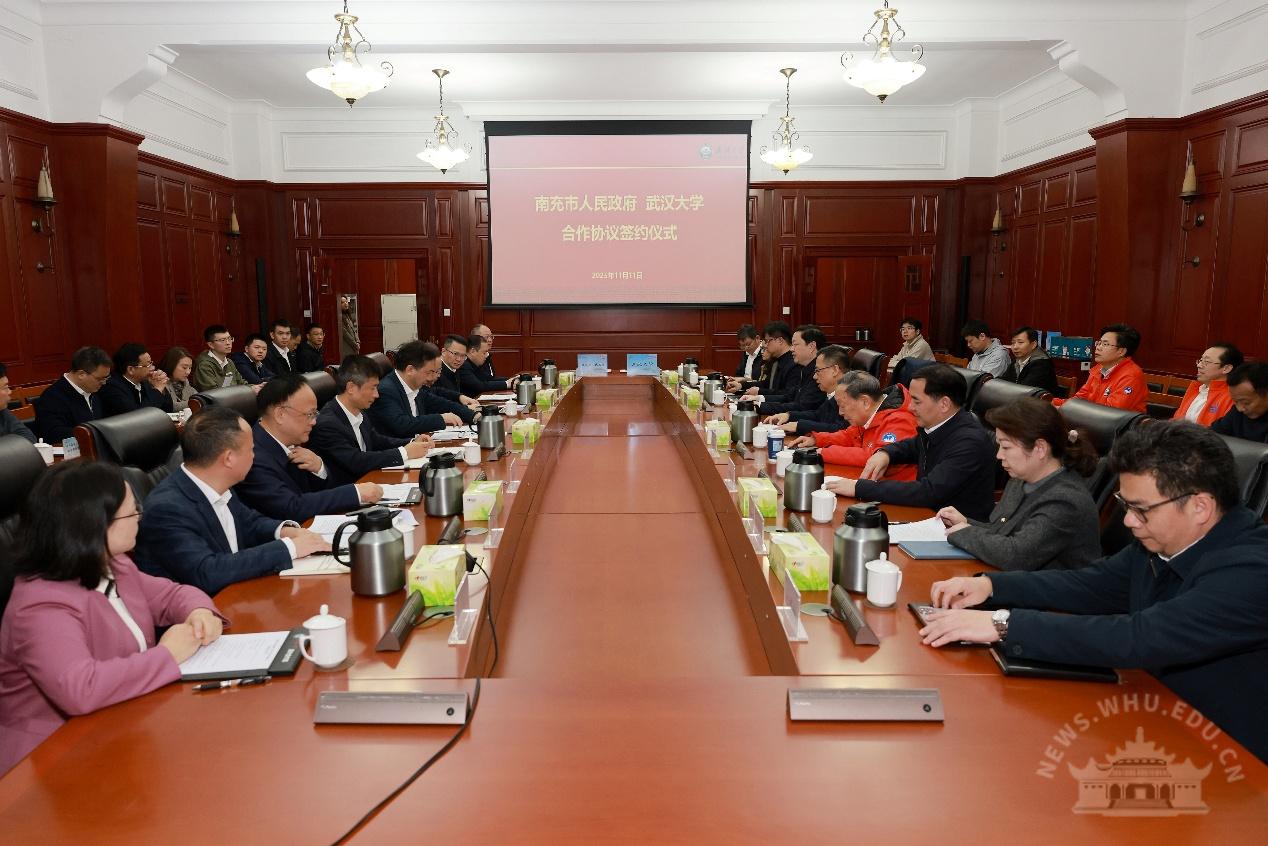新闻网讯(记者相茹)11月11日,武汉大学与南充市人民政府签署合作协议,共同推进校地协同创新与高质量发展。南充市委书记张冬云、市委常委王毅、副市长罗明远,武汉大学党委书记朱孔军、副校长龚威、校长助理徐东兴,院士李德仁出席签约仪式。