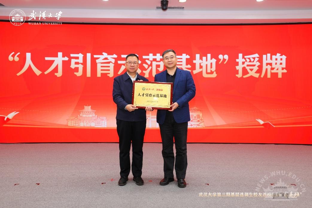 朱孔军为五个“人才引育示范基地”授牌并作总结讲话。他指出,武汉大学坚守为党育人、为国育才的初心使命,高度重视选调生工作,已建立起覆盖“在校培养、招录输送、跟踪关怀、返校培训”的全链条支持体系。他勉励选调生校友们,坚定理想信念,胸怀“国之大者”,始终用党性原则修身律己;坚守人民立场,在为群众服务中增长才干;保持进取精神,敢于担当,善于作为,为服务国家富强、民族复兴、人民幸福贡献力量。他表示,母校永远是校友的坚强后盾,希望大家常回母校,积极推动校地联动,让武大精神在祖国基层扎根绽放。
