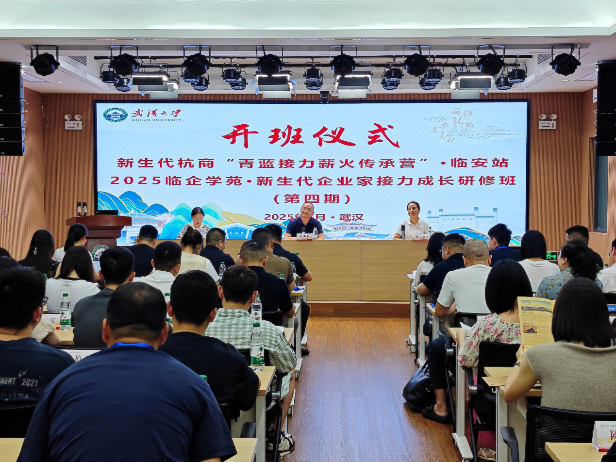 (通讯员 刘小莉、刘珍珍)7月14日至18日,2025临企学苑·新生代企业家接力成长研修班(第四期)在武汉大学顺利举办。杭州市临安区工商业联合会党组成员、副主席黄小兵,武汉大学继续教育学院副院长仲华出席开班仪式并讲话。仪式由杭州市临安区经济和信息化局党委委员、副局长顾小晶主持。来自不同行业的45名新生代企业家代表参加了此次培训。